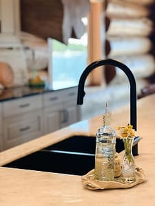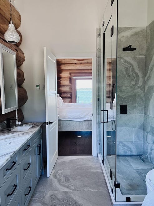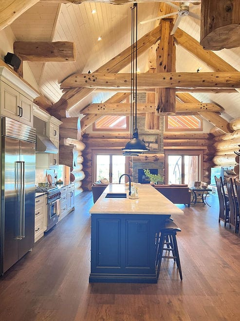 I also love the black metal roof to add contrast to the exterior, and also helps this log cabin to feel very much “of today.”