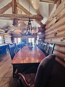 Dining Room – check out the authentic Elk chandelier – a log cabin is about the only time I’d specify one of these but man, does it work here!!
