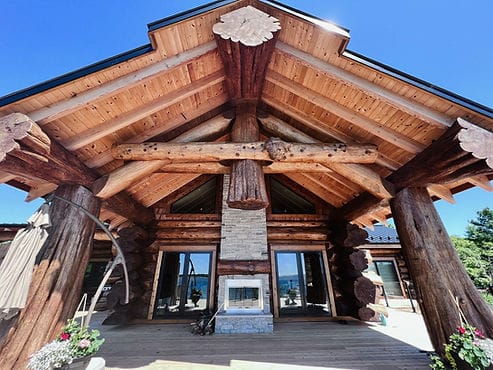 Lake Country Log Homes built and assembled the entire structure here in BC, then had it shipped across the country to reassemble on site.