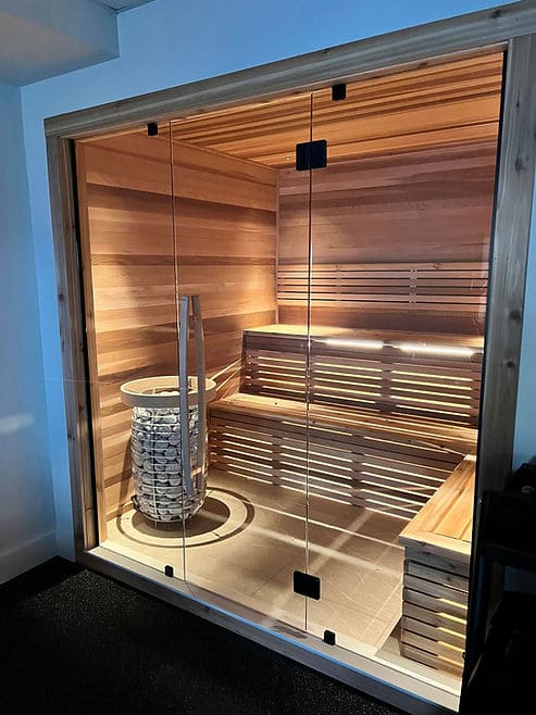 Oh and before I sign off, check out this beautiful Finnish sauna they incorporated into the basement gym area. Beautiful, relaxing and healthy too. Winning all around.