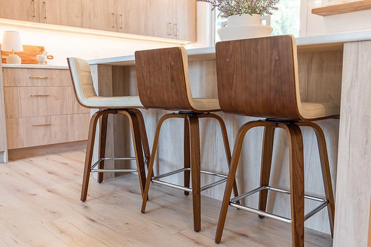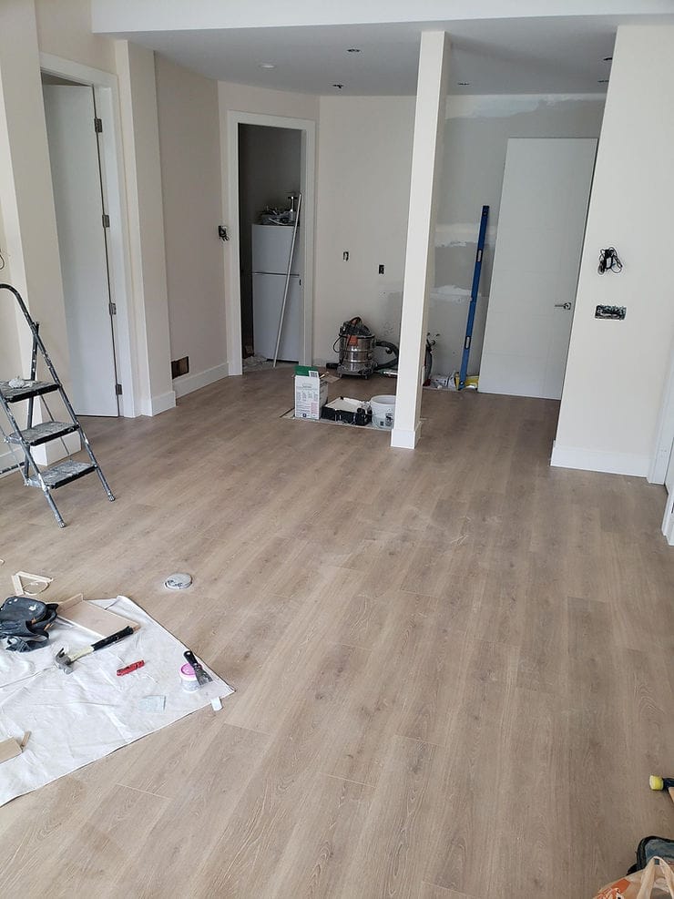 After adding heated floors throughout, we laid a beautiful high end laminate that had a warmer and more consistent colouring than the existing floors which had varied sizes and colour. These days the high end laminates rival the durability of Luxury Vinyl Plank in terms of scratch and water resistance, but often look slightly more like the real thing than the often plasticy-finish of LVP.