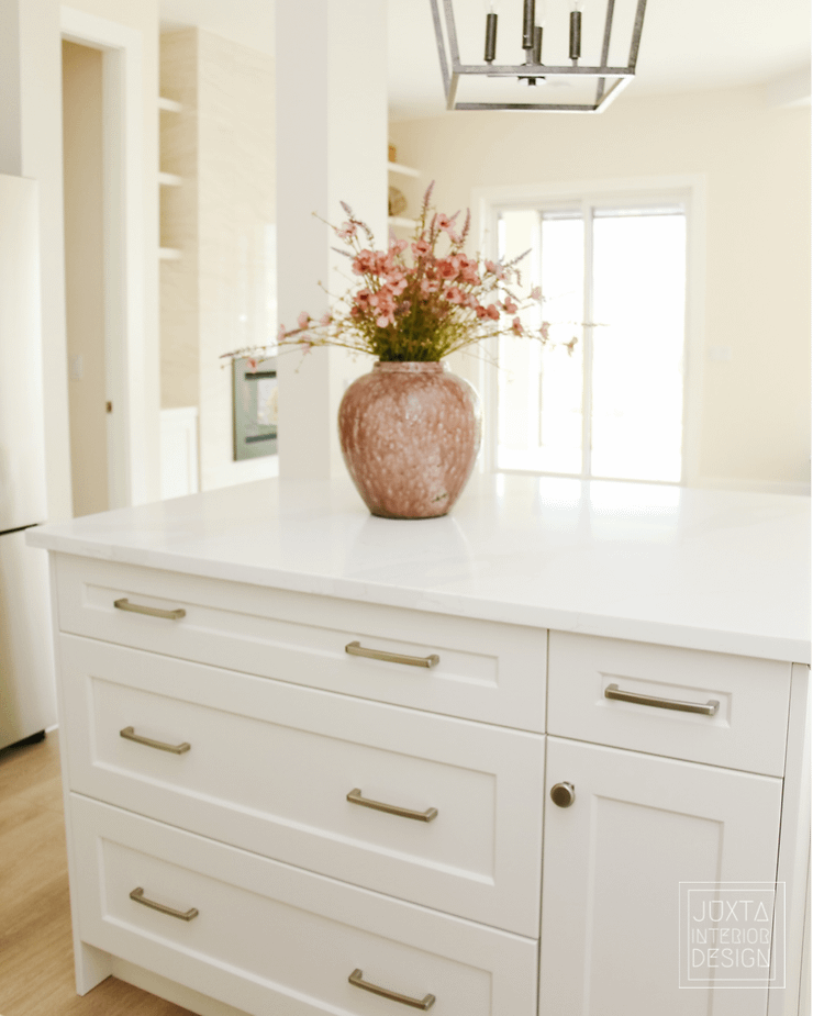 When planning an island with your cabinetry shop, don’t forget to consider finishing details, so as to help it not to look like floating wall cabinets. Simply adding baseboard will help finish and ground it, or mimic the shakers of the cabinet doors like we did here.